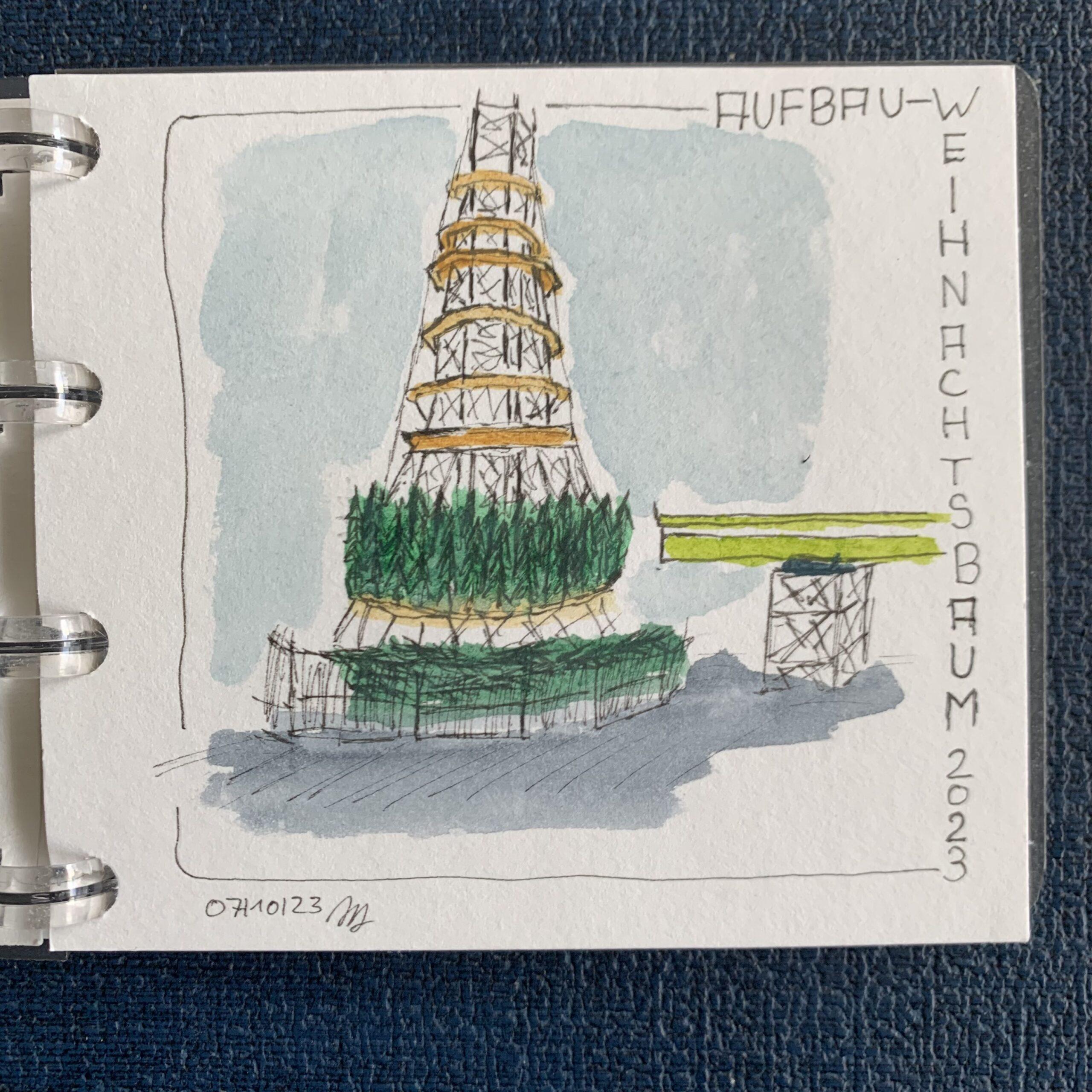 Weihnachtsbaum-Aufbau von MichaG | Nov. 29, 2023 | Zeichnungen | 0 Kommentare Schneller Minisketch (9x9cm) vom Aufbau des sogenannten „Weihnachtsbaums“ auf dem Hansaplatz. Kommentar absenden Antwort abbrechenDu musst angemeldet sein, um einen Kommentar abzugeben.
