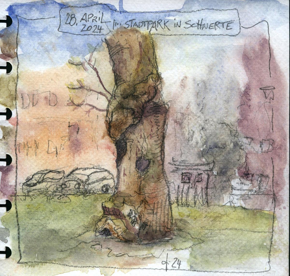 Bäume reizen mich immer wieder als Motiv. Viele interessante “freie” Formen, die das Hirn nicht in gestalterische Schubladen leiten. Da kann die rechte Hirnhälfte sofort voll einsteigen und die linke macht ein Päuschen.