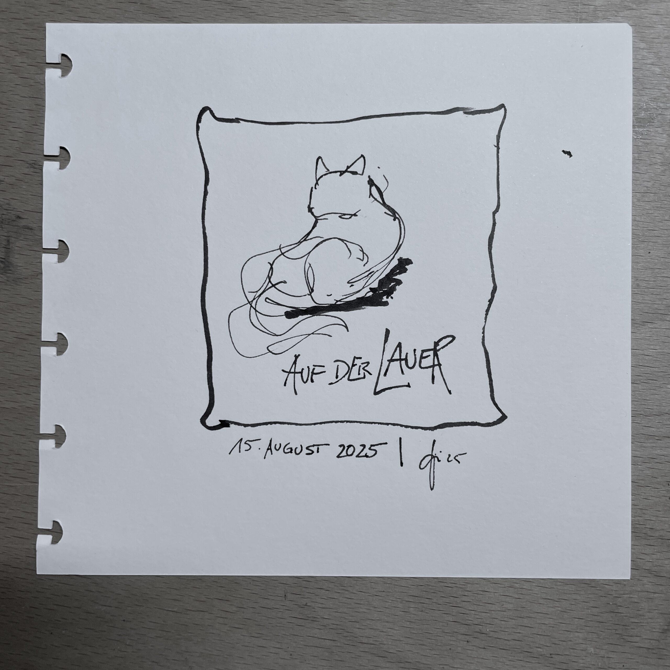 Kater Carlos von Guido Wessel | Aug. 21, 2025 | Allgemein | 0 Kommentare Anders als sein Kumpel Louis ist Carlos eher der geduldige Jäger. Er kann ewig lange vor einem Mauseloch lauern. Schnellskizze vom Balkon aus. Füller Fude de Mannen Kommentar absenden Antwort abbrechenDu musst angemeldet sein, um einen Kommentar abzugeben.