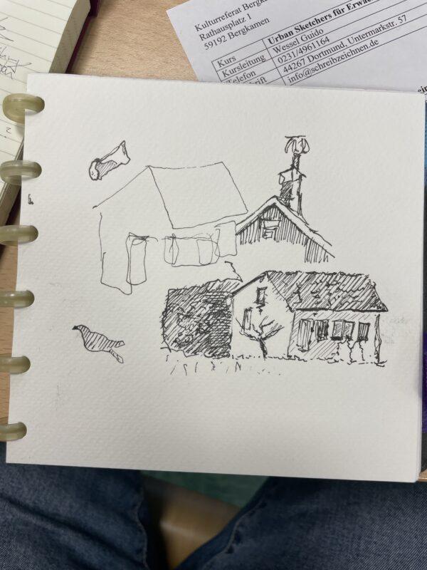 Für das nächste Treffen der Bergkamener Urban Sketcher habe ich die Kleingartenanlage "Grüne Insel" an der Büscherstraße 18, 59192 Bergkamen ausgesucht. Ich schätze, das geht gut. Das Lokal in der Anlage verfügt über eine überdachte Terrasse.