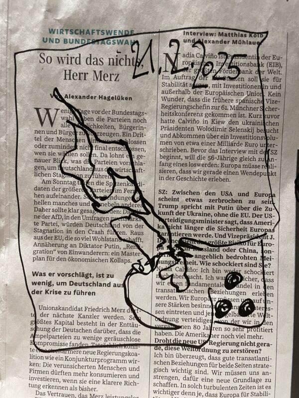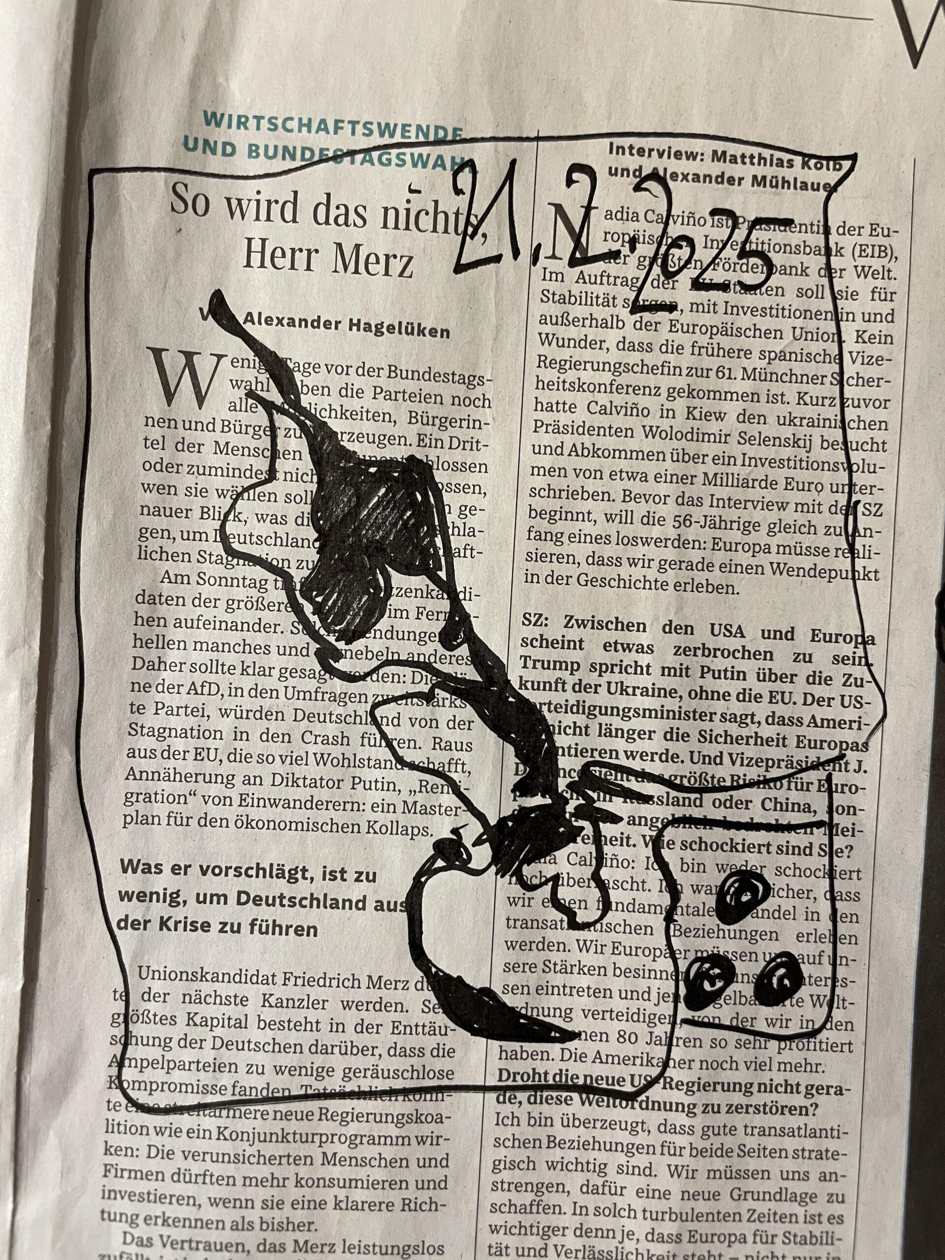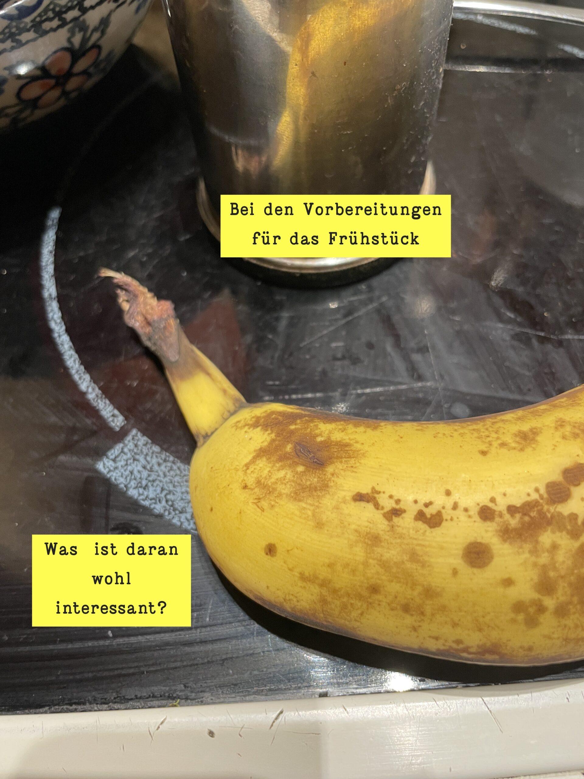 Meine morgendliche Blindskizze: Teil einer Banane. Ich widme mich immer mal wieder Motiven, die erstmal völlig uninteressant wirken. Die entstandene kleine Skizze habe ich später weiter bearbeitet.