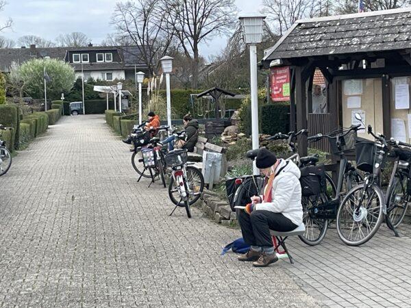 Das war eine schöne Erfahrung. In der Kleingartenanlage "Grüne Insel" in Bergkamen hatten wir unseren ersten Außentermin zum Zeichnen. Es war ganz schön kühl, aber trocken. Die meisten Teilnehmerinnen und Teilnehmer haben sich in der Nähe der netten Gastronomie niedergelassen. Das Gartenhäuschen direkt gegenüber ist wohl noch nie so oft gezeichnet worden.
