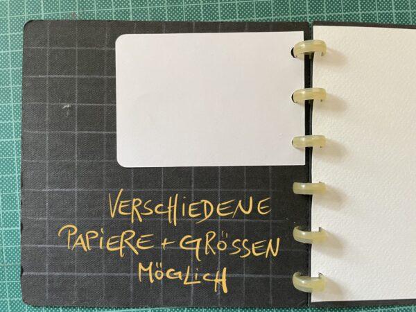 Das Atoma-System erlaubt es, Blätter beliebig einzuheften. (Infos zu diesem System findest du hier. (Du musst etwas herunterscrollen bis zm Artikel „Mein Atoma-Skizzenbuch“)