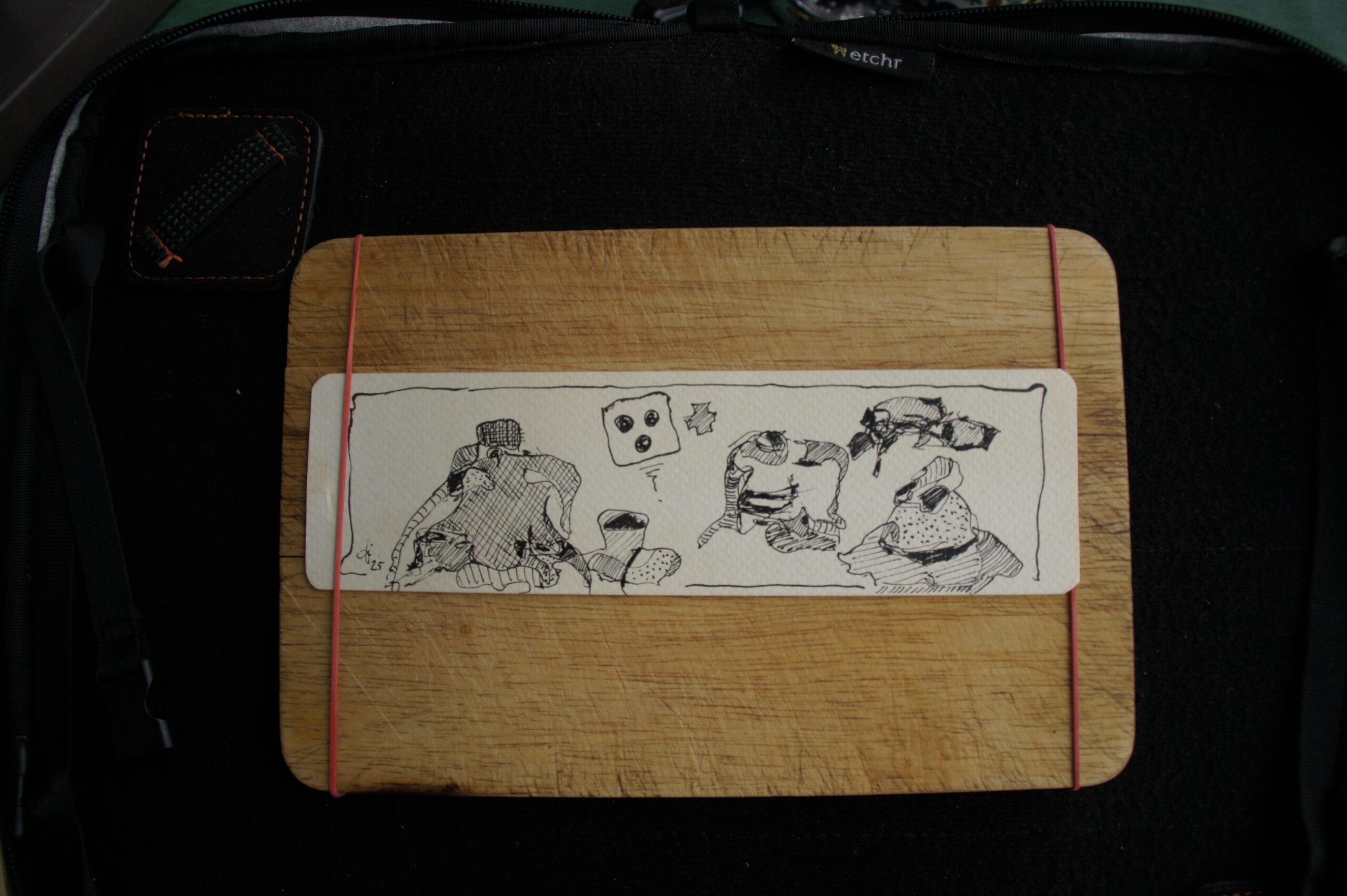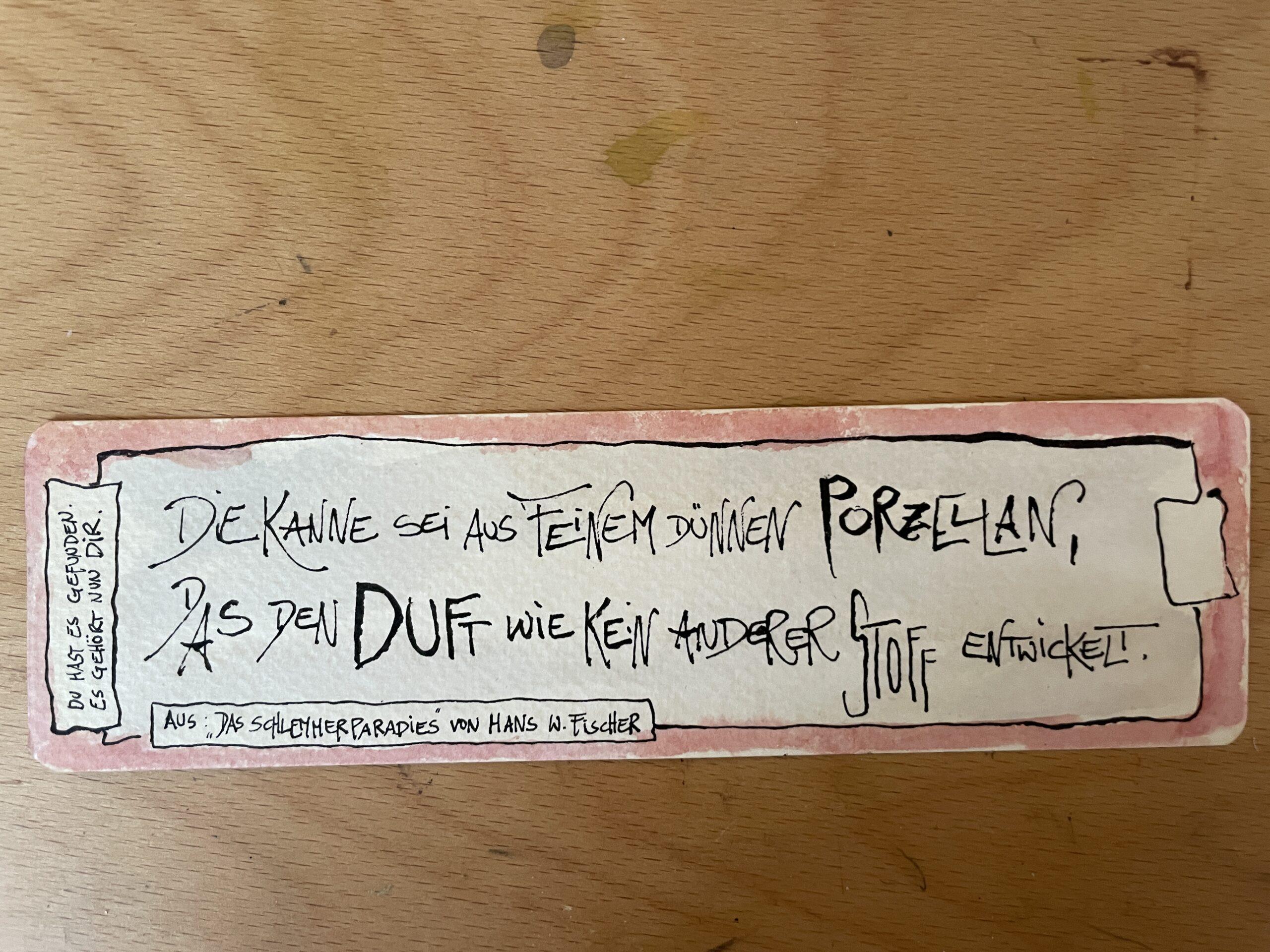Idee der Teilnehmerinnen am Schreibzeichnenworkshop im Café am Mergelteich: Wir gestalten Lesezeichen mit Text und Zeichnung. Dann schicken wir sie auf Wanderschaft.