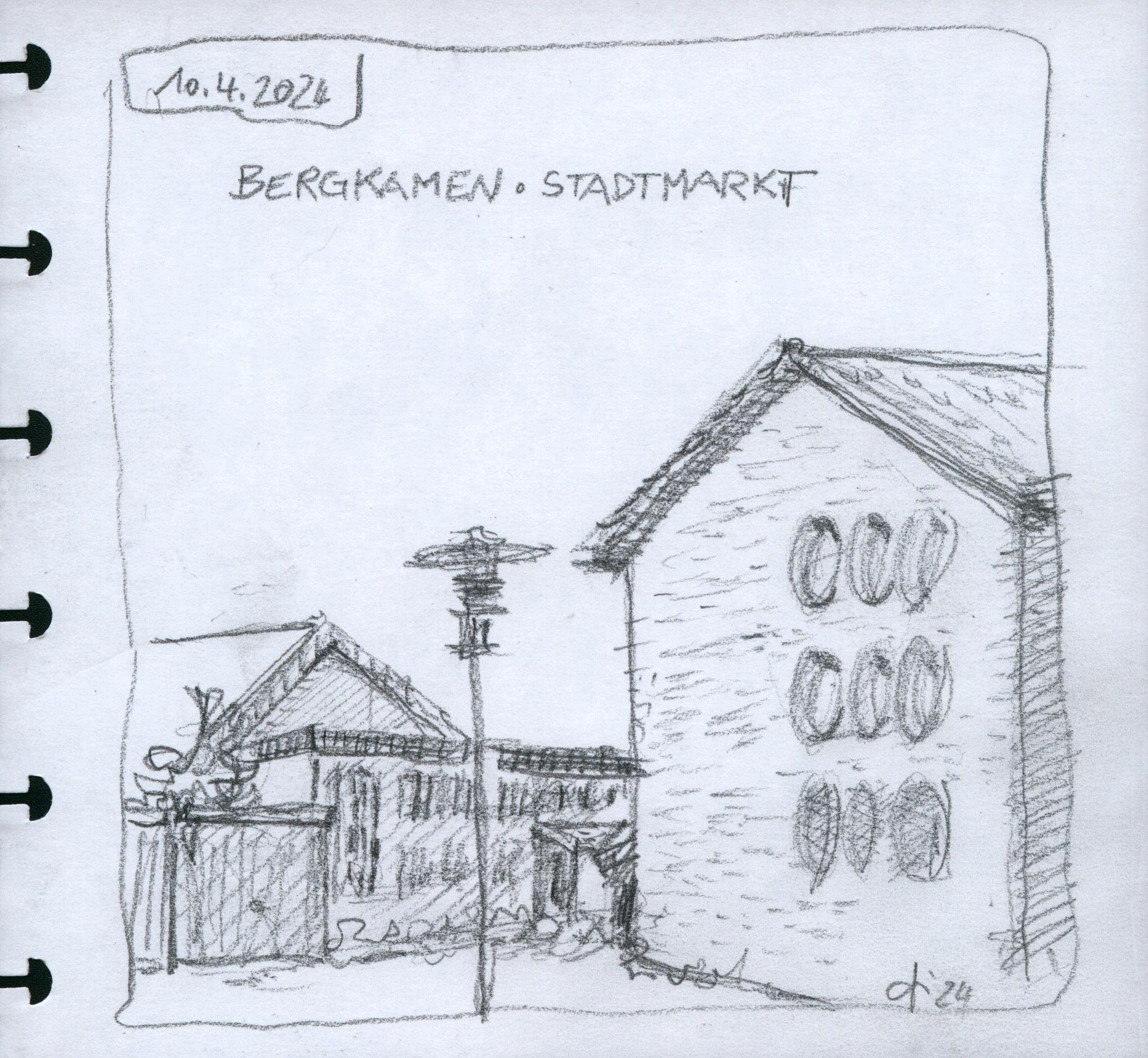 Ein herrlicher Zeichenabend auf dem Marktplatz mit den Bergkamener Urban Sketchers. Rundum spannende Motive und dazu noch das totale Verwöhnwetter.