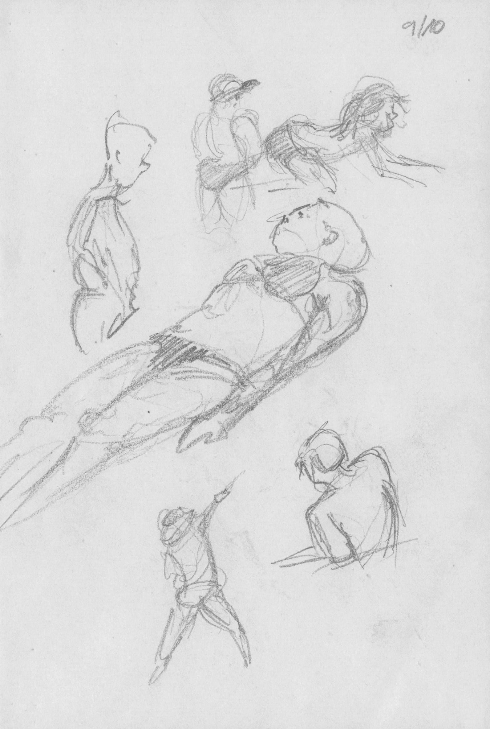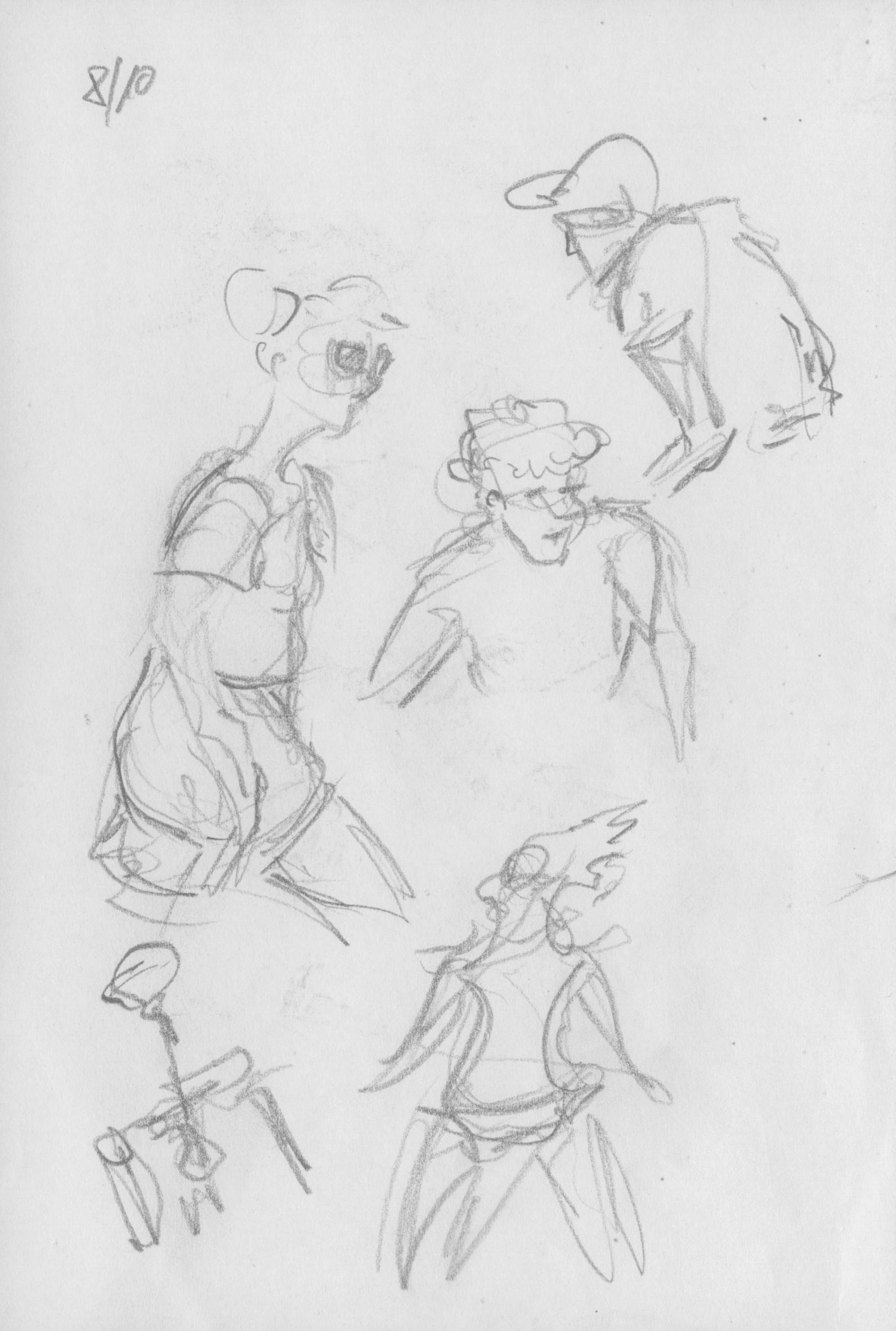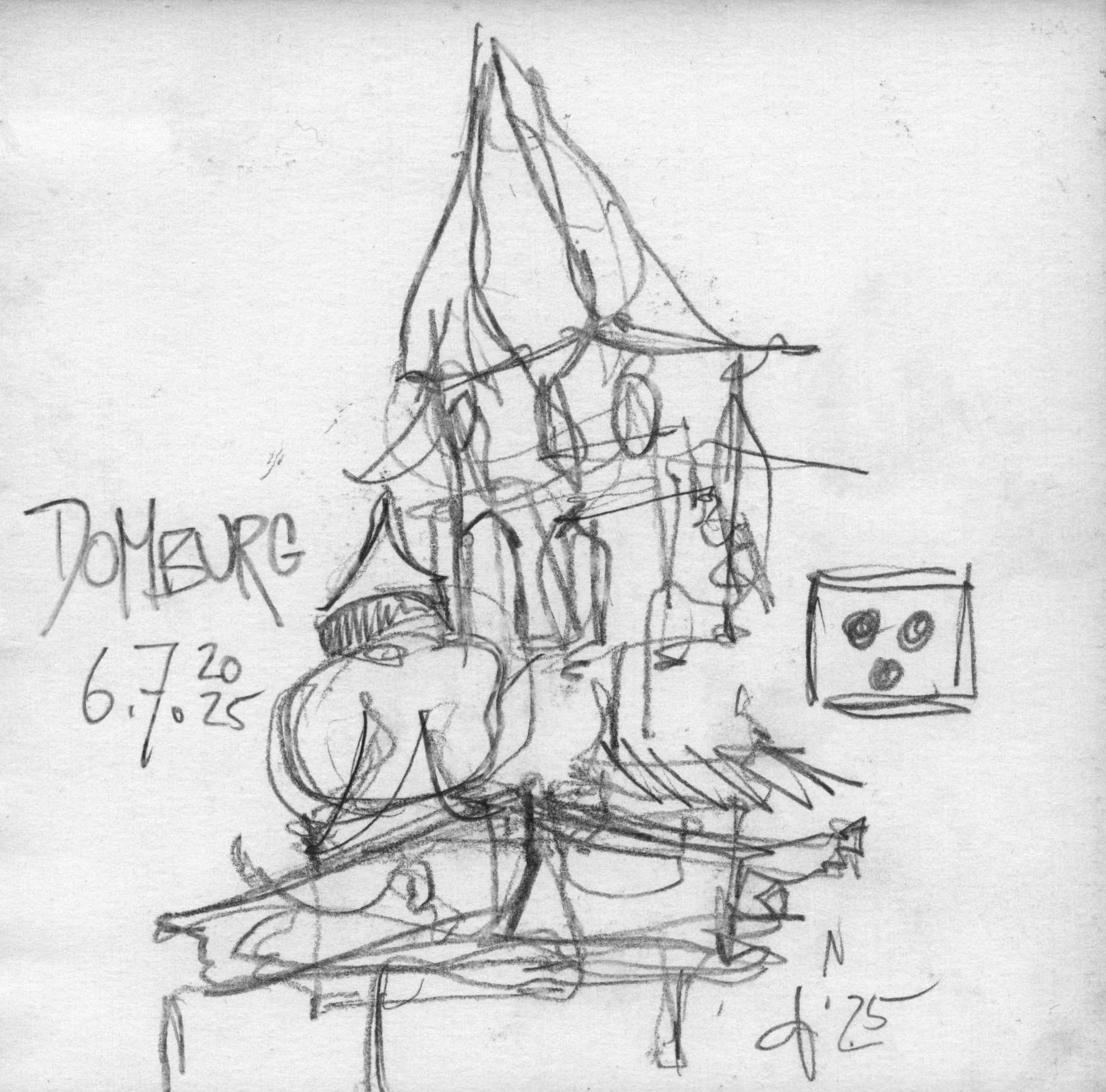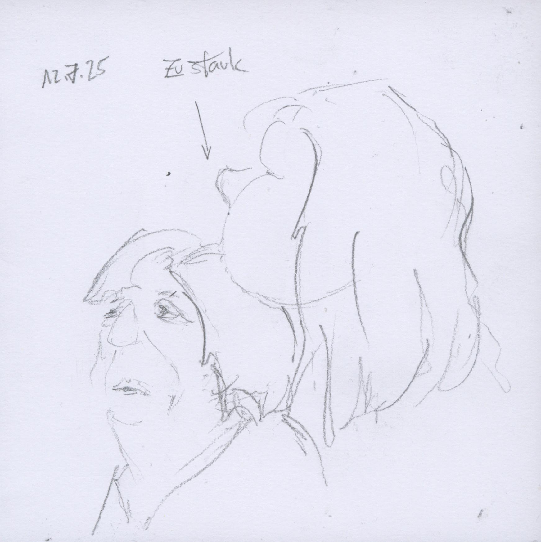 Die Skizzen habe ich durchweg live gezeichnet. Das ist bei den Menschenskizzen durchaus herausfordernd. Entspannend sind dann dagegen die Blindzeichnungen. Auch immer wieder gerne.