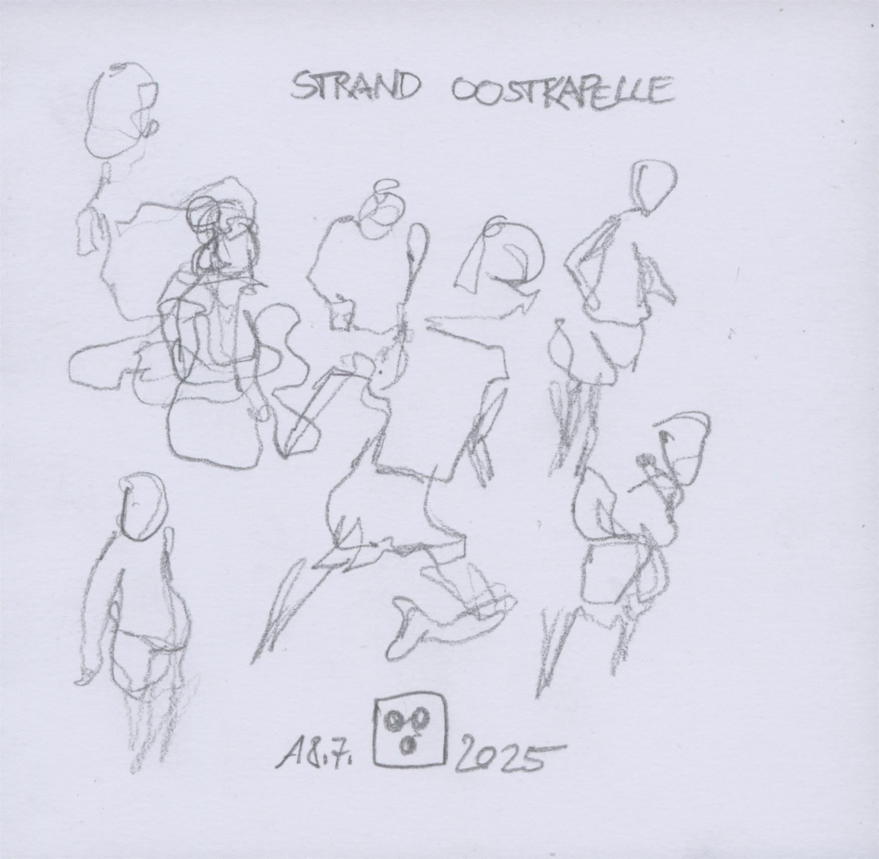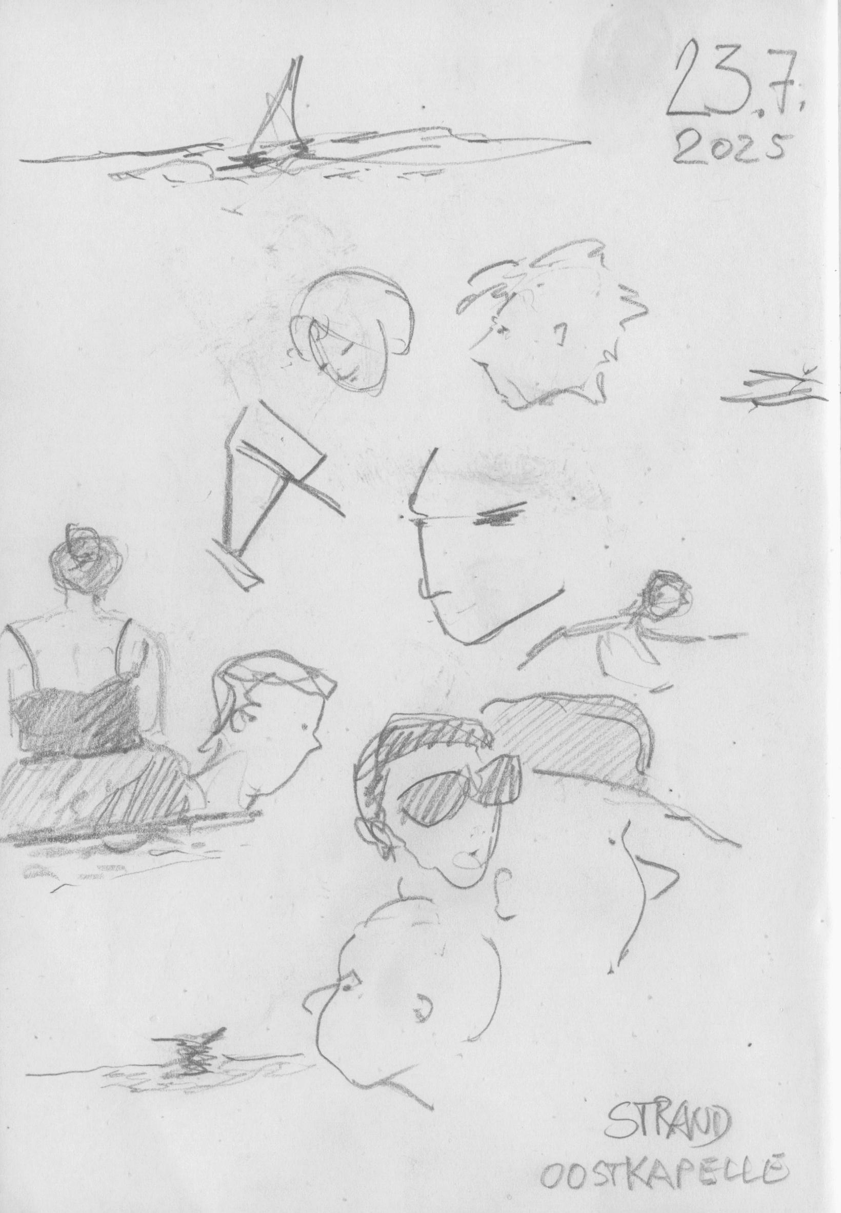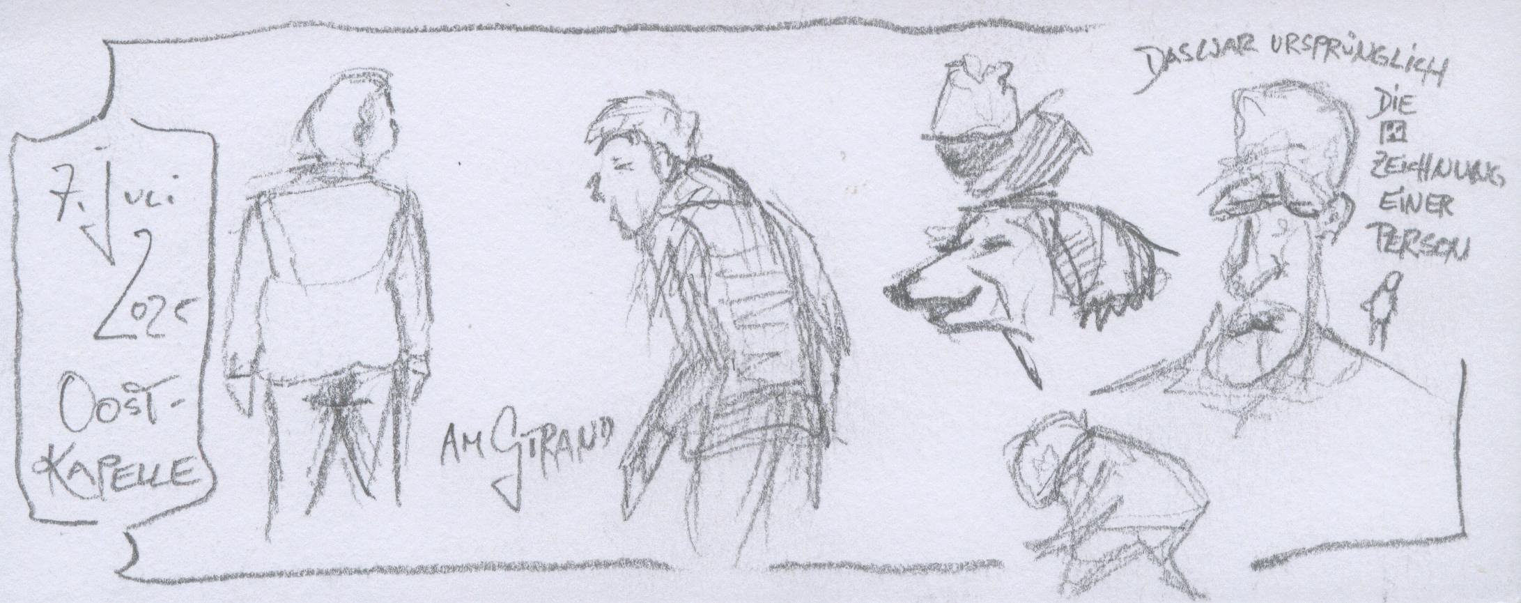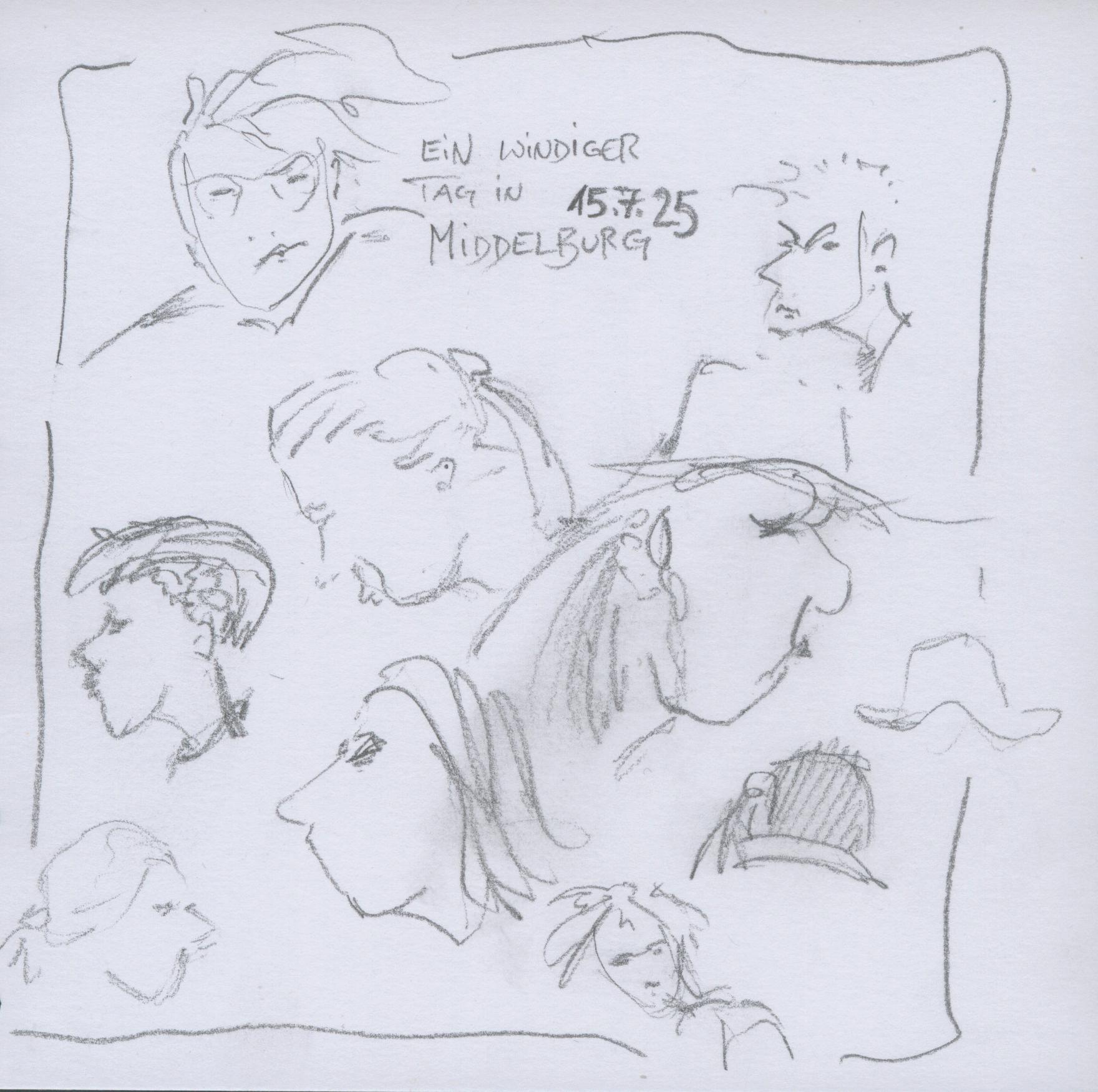 Urlaub auf Walcheren – ein Genuss! Ich hatte reichlich Gelegenheit, am Strand von Oostkapelle zu zeichnen. Aber auch in Middelburg, Domburg und an unserer Unterkunft habe ich den Stift bewegen können.