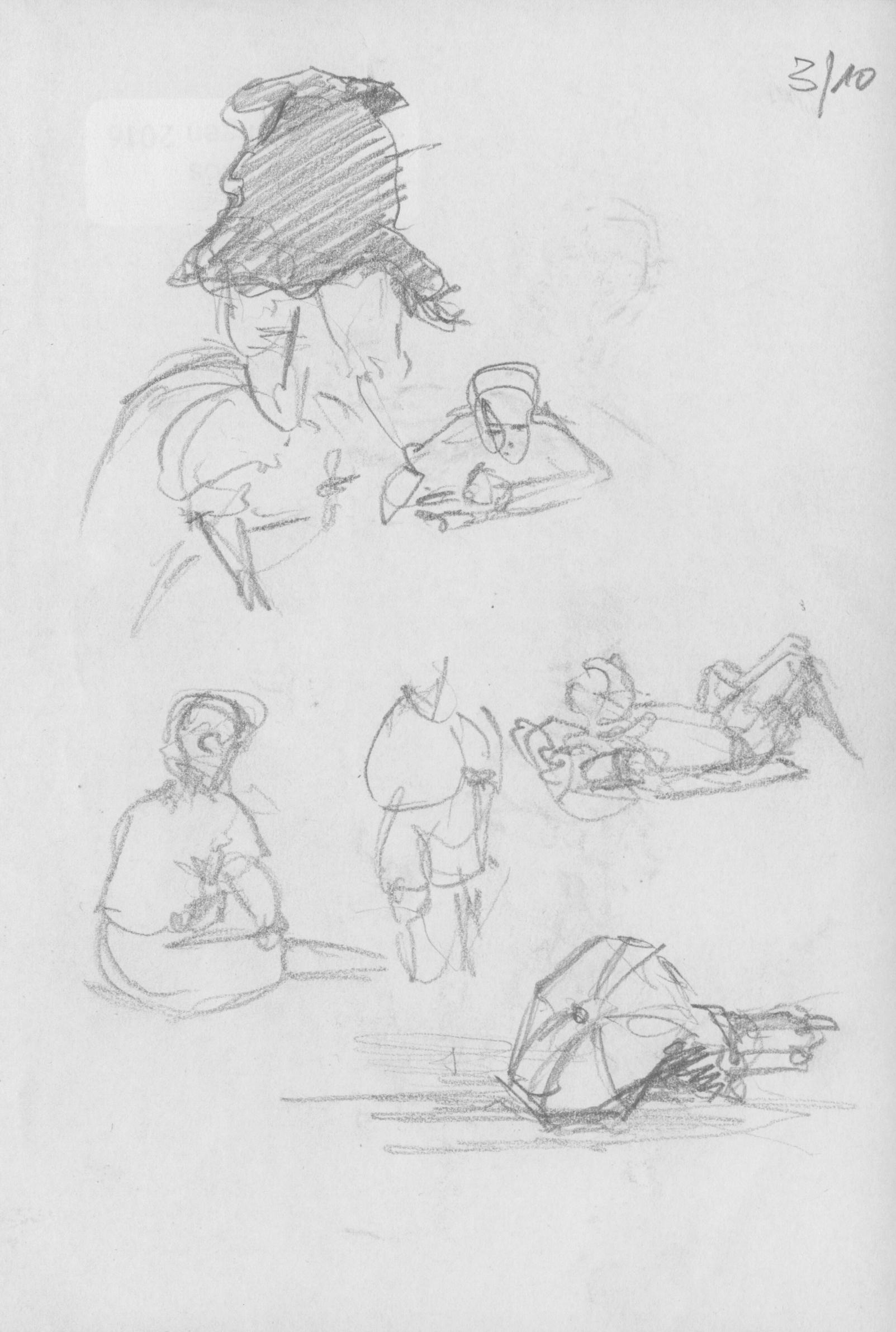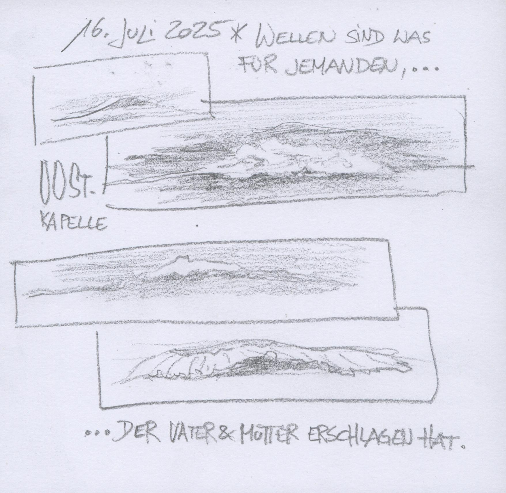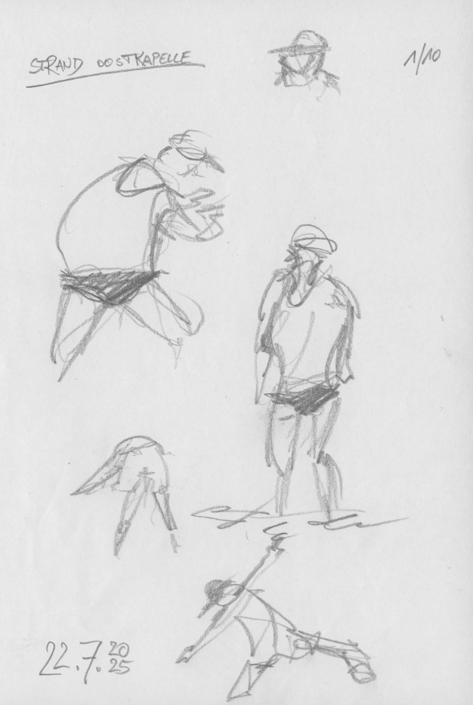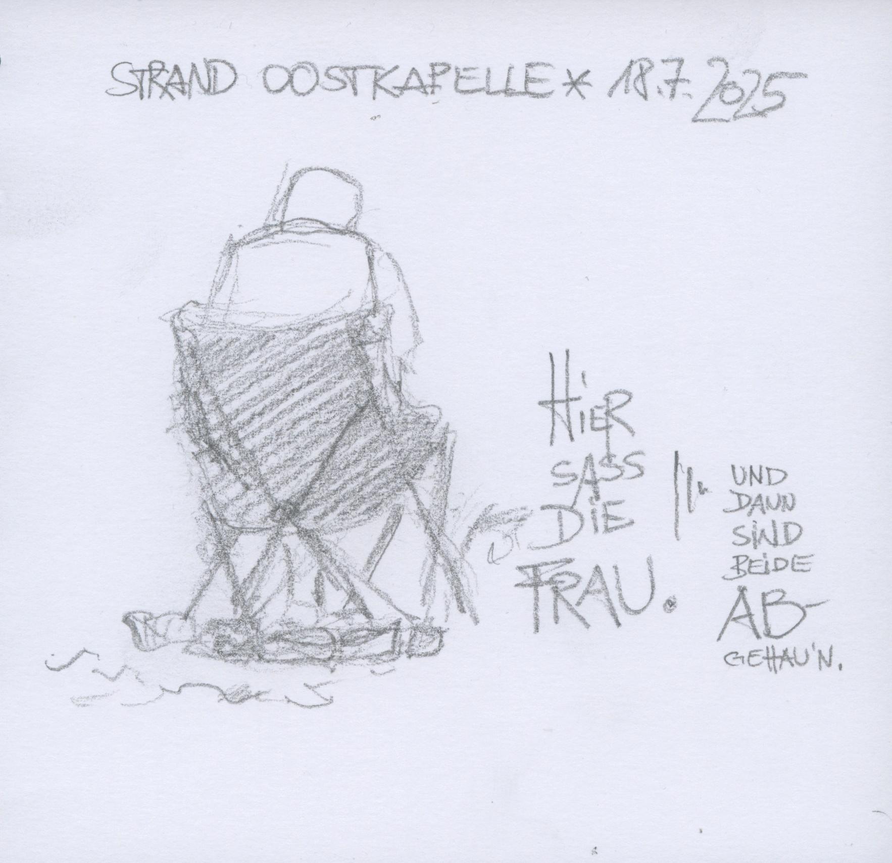 Urlaub auf Walcheren – ein Genuss! Ich hatte reichlich Gelegenheit, am Strand von Oostkapelle zu zeichnen. Aber auch in Middelburg, Domburg und an unserer Unterkunft habe ich den Stift bewegen können.