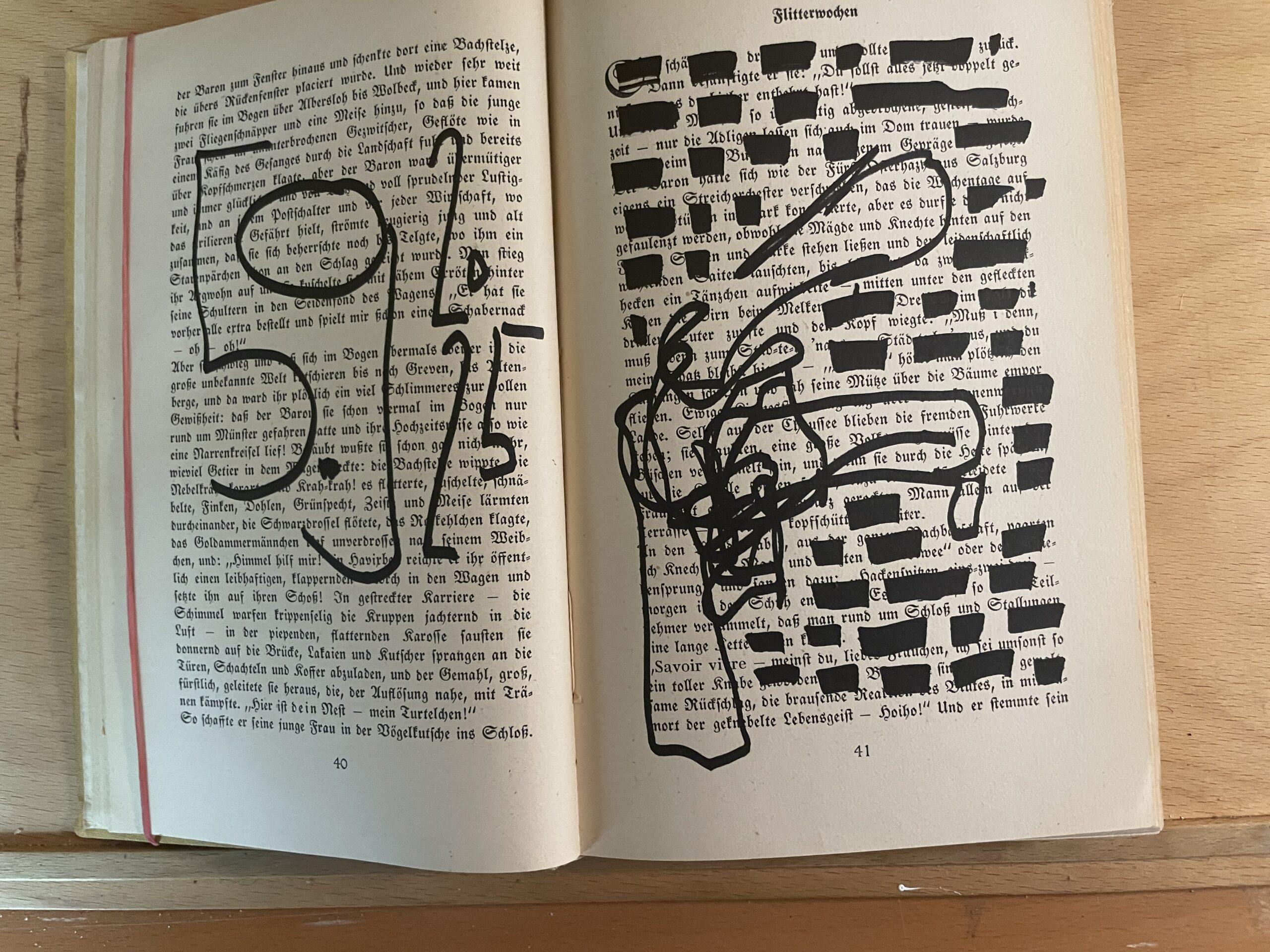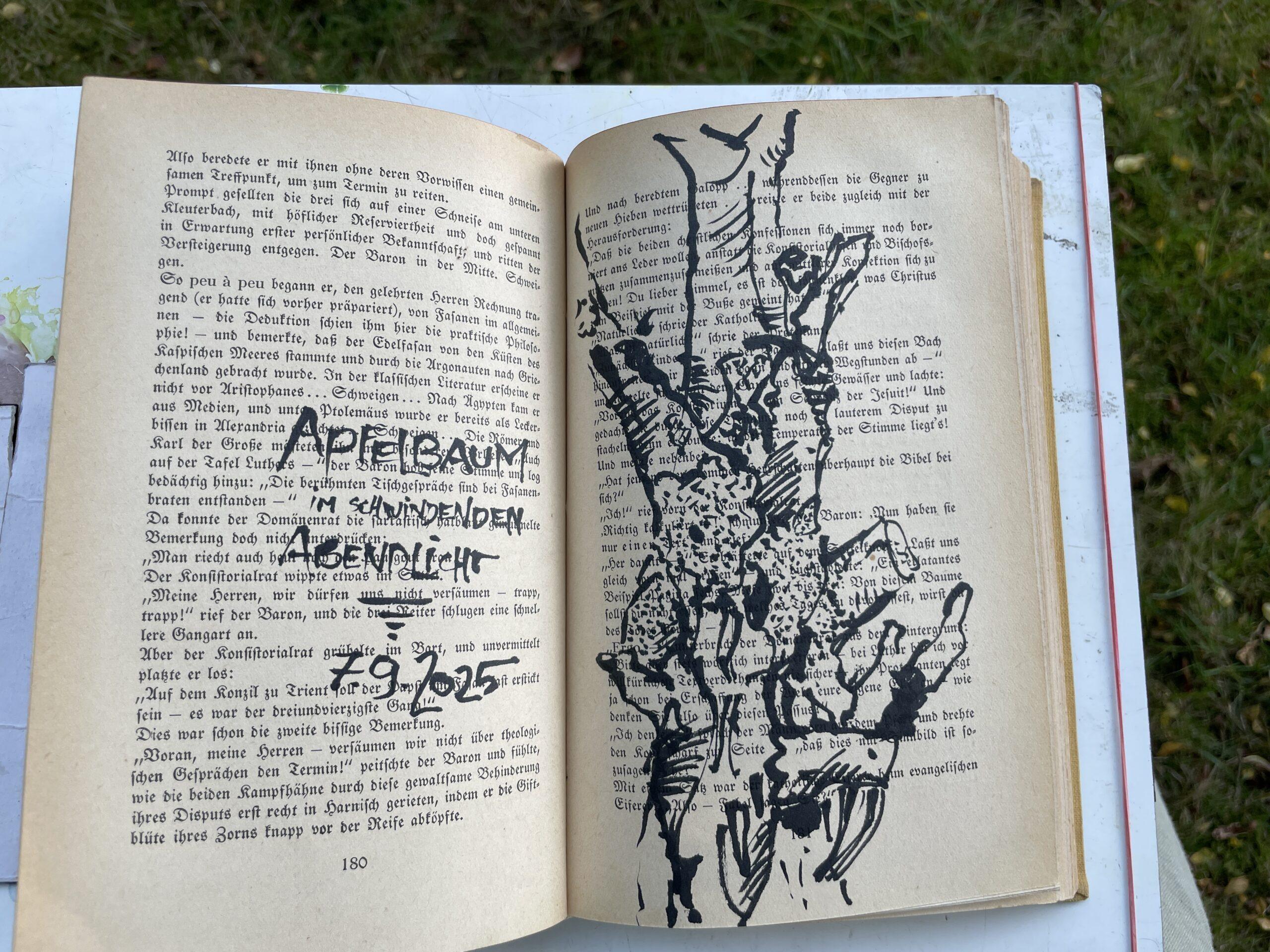 Ich liebe die alten Schinken, die ich in den öffentlichen Bücherschränken finde. Sie eignen sich toll als Zeichenbücher.