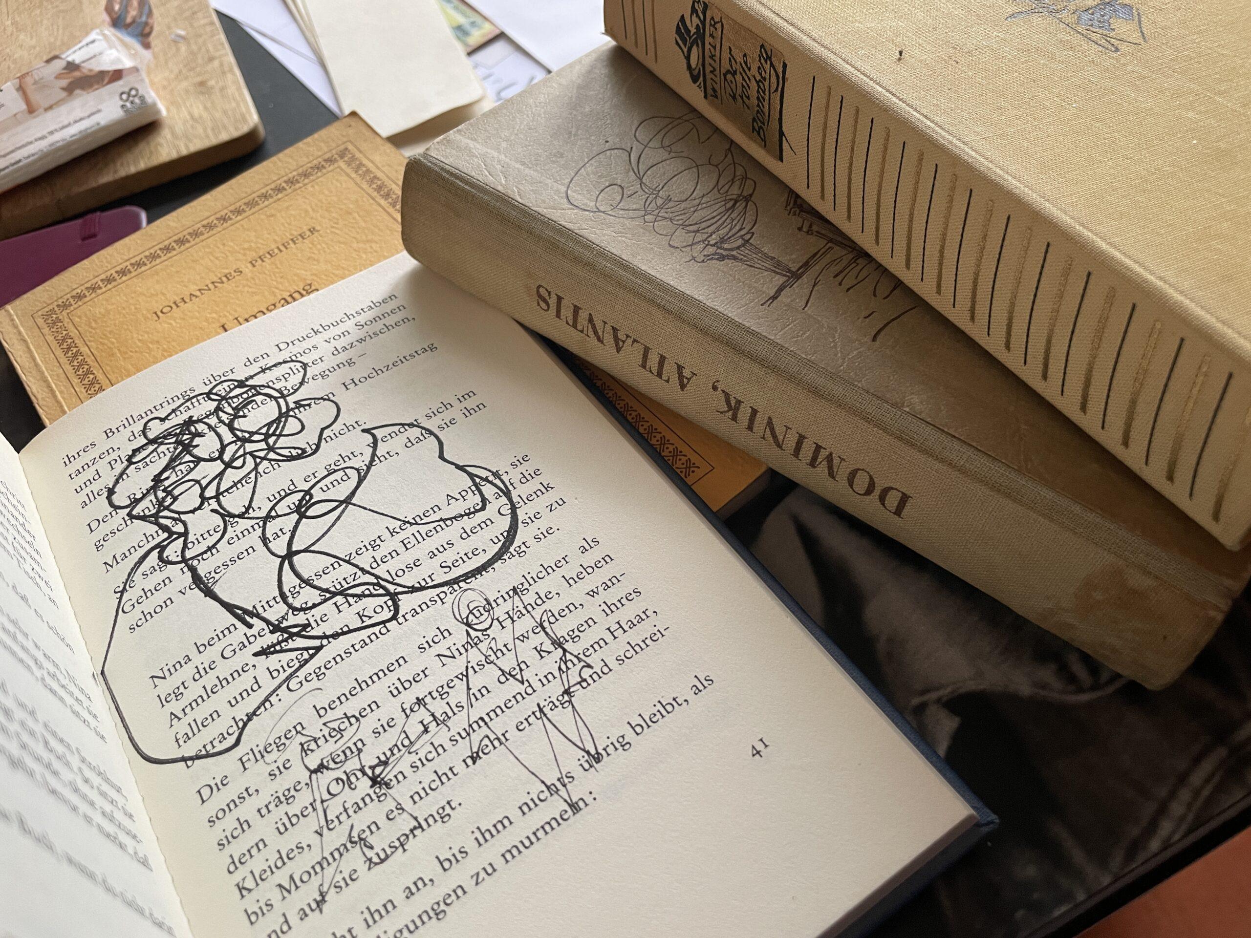 Ich liebe die alten Schinken, die ich in den öffentlichen Bücherschränken finde. Sie eignen sich toll als Zeichenbücher. Warum?